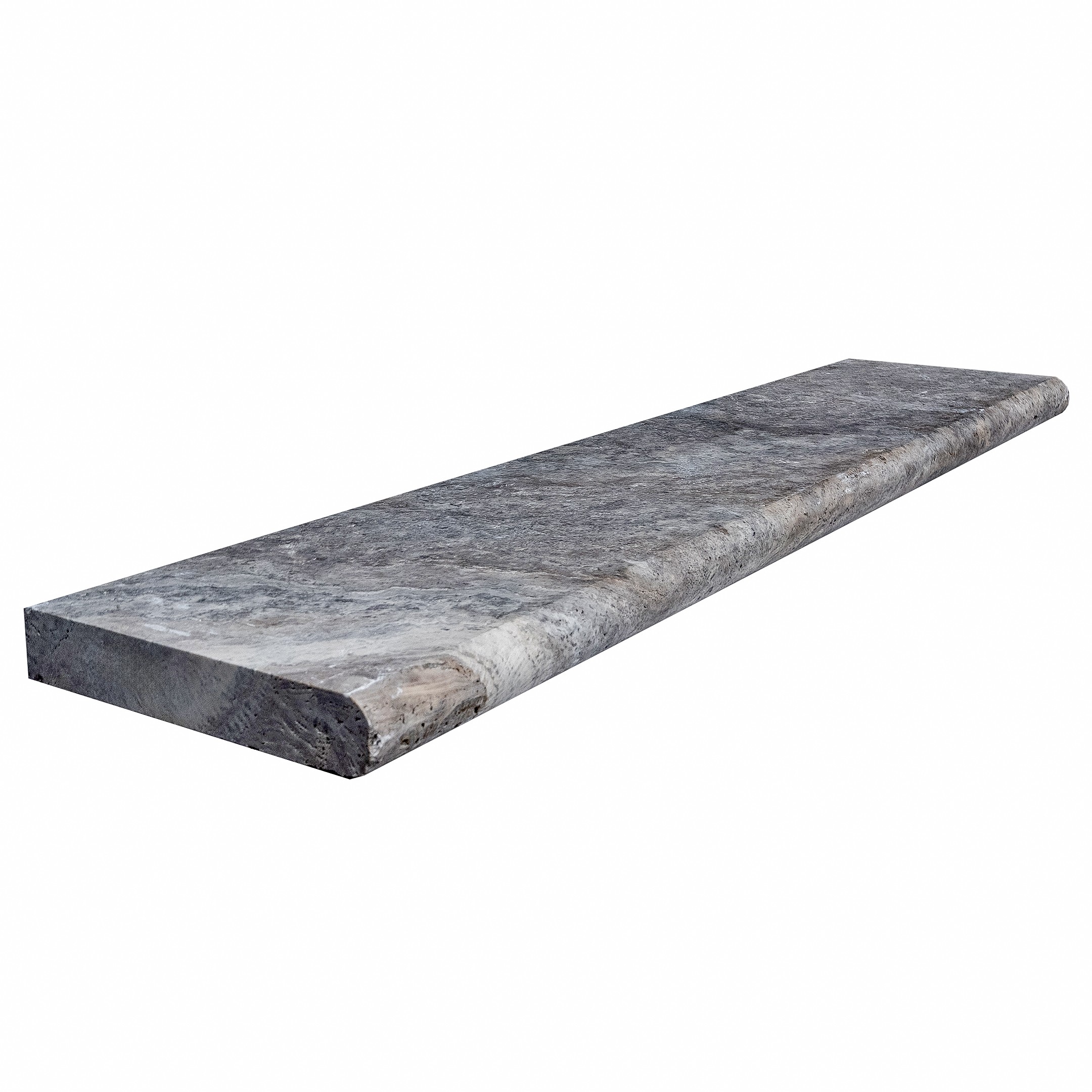Silver TravertineSizes : 6″x12″x2 Bullnose12″x24″x2 ” Bullnose or Eased Edge12″x48″x2 Bullnose or Eased Edge16″x48″x2 ” Bullnose or Eased Edge12″x72″x2 ” Bullnose or Eased Edge14″x72″x2″ Bullnose or Eased Edge16″x72″x2 ” Bullnose or Straight Edge24″x36″x2 ” Bullnose or Eased Edge24″x72″x2 ” Eased Edge Category: Copings & TreadsShare this product DescriptionDescription