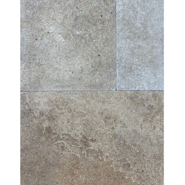 Walnut Travertine Tumbled Pavers  is a light tan color with hazelnut swirls.